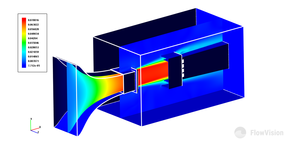 Данная работа проведена в рамках подготовки к натурному эксперименту, в котором будет исследовано определённое внешнее воздействие на структуру особого типа течения газа в аэродинамической трубе. Это течение формируется при взаимодействии сверхзвукового воздушного потока с поперечной вторичной струёй, инжектируемой в этот сверхзвуковой поток через отверстие на плоской стенке. В зарубежной литературе для этого течения принято обозначение JISC (jet interacting with supersonic crossflow).
