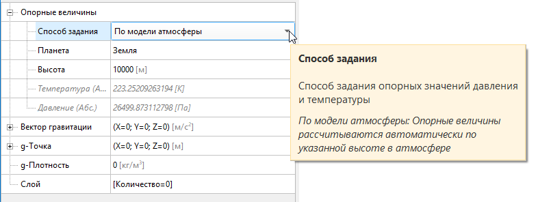 При задании опорных величин теперь возможно использовать модель атмосферы Земли и Венеры. В этом случае опорные величины для температуры и давления автоматически рассчитываются по указанной высоте.