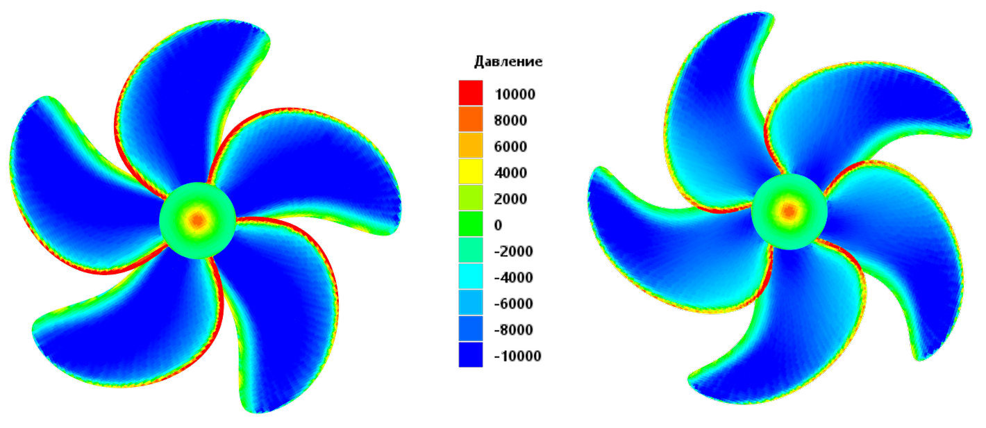 Увеличенная саблевидность лопастей позволила обеспечить так называемый безударный вход в воду, что привело к более равномерному распределению давления на обеих сторонах лопасти. Кроме того, практически ушло перетекание с засасывающей на нагнетающую поверхность лопасти винта.