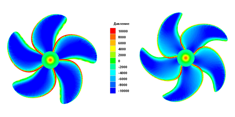 На примере варьирования формы внутри оптимизационного цикла мы видим работу алгоритма IOSO, который сначала меняет модель в широком диапазоне параметров, а после сужает диапазон поиска экстремума вокруг самых перспективных областей пространства функции. Итогом работы стали две новые геометрии гребного винта, оптимизированные с использованием FlowVision и IOSO, а также Star-CCM+ и DT Seven. Давайте разберём их более подробно.