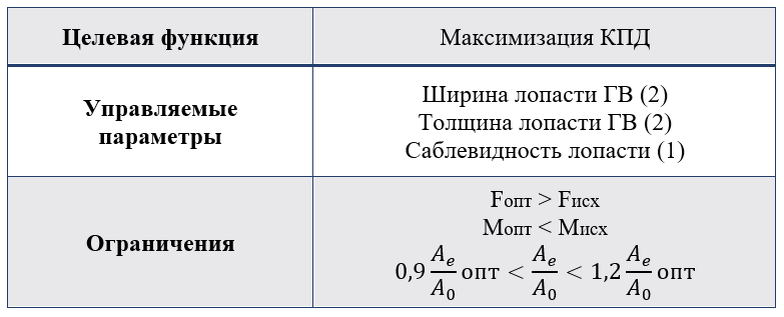 После успешного моделирования была проведена оптимизация винта с использованием российского оптимизатора IOSO. В качестве управляемых величин было выбрано 5 параметров: 2 по ширине, 2 по толщине и 1 по саблевидности лопасти. Оптимизационная задача включала максимизацию КПД при соблюдении заданных ограничений, которые в данном случае касались упора, момента и дискового отношения. Ещё раз напомним, что ровно такие же ограничения были и при оптимизации винта с использованием Star-CCM+, но в качестве оптимизатора тогда использовался DT Seven (ранее называемый pSeven).