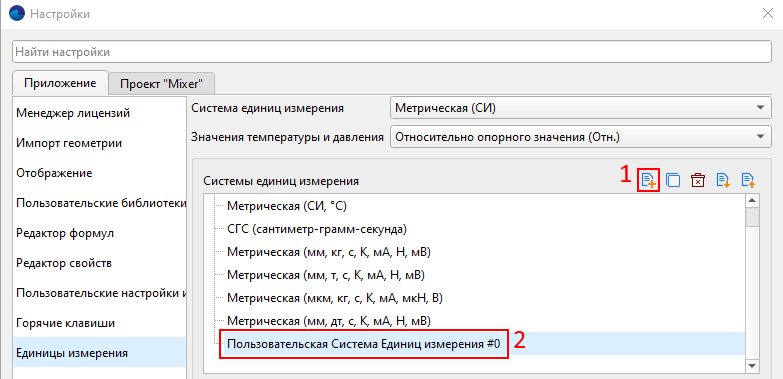 В разных отраслях промышленности приняты собственные совокупности единиц измерения. Для повышения удобства работы с FlowVision мы предусмотрели возможность выбора системы измерений из заранее предопределенных, а также создание собственных систем измерения.
