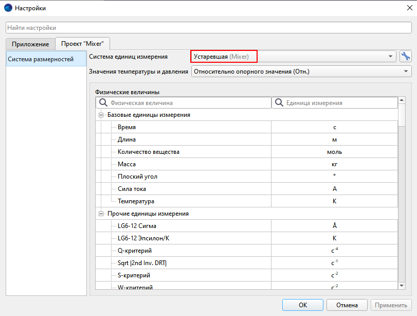 Здесь также можно посмотреть список базовых единиц измерения, которые FlowVision может предложить в ПреПостпроцессоре на замену при любой выбранной системе, для этого надо перейти в редактор :