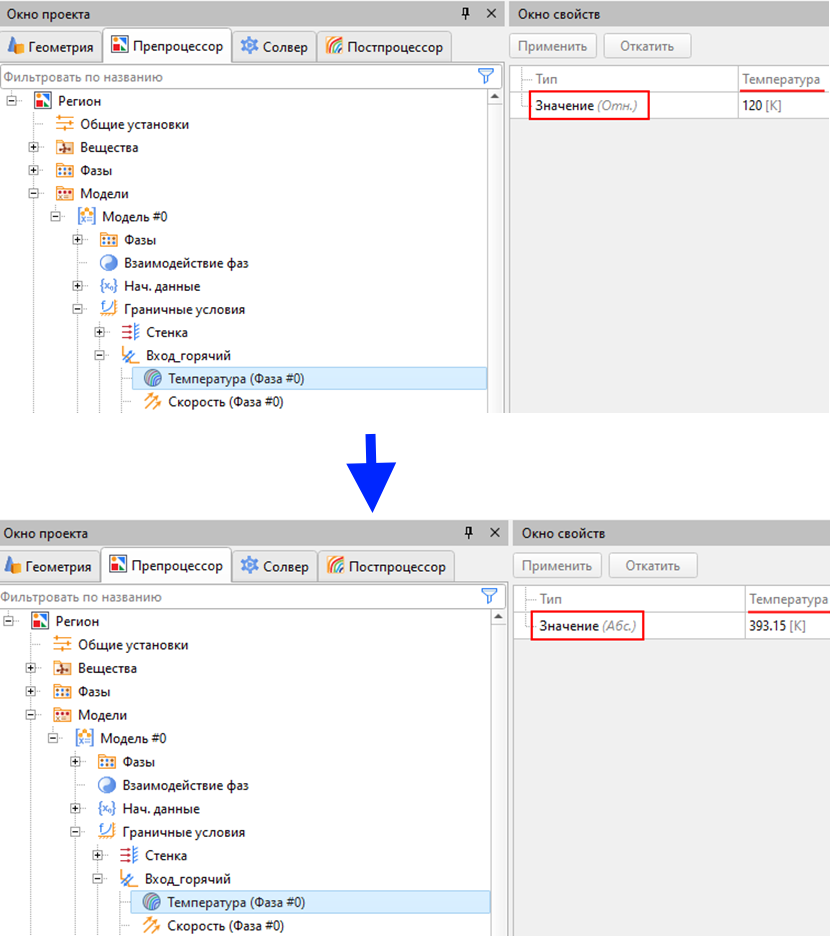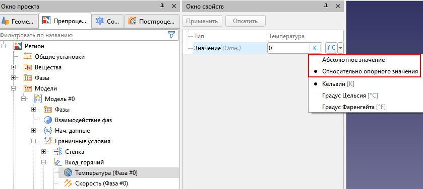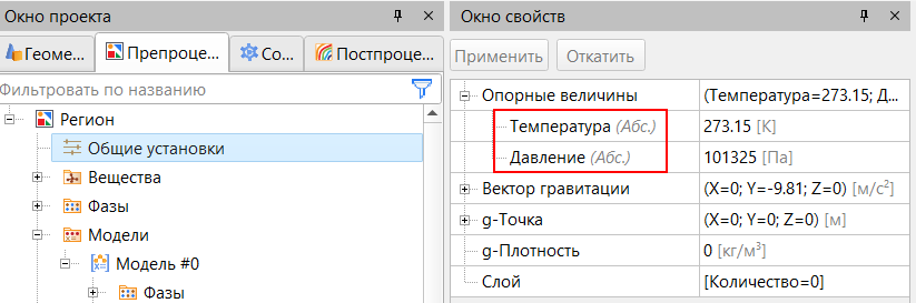В версии 3.15 появилась возможность задавать абсолютные значения температуры и давления в начальных условиях, граничных условиях, таблицах, при обработке результатов и т.д. При этом опорные величины никуда не делись, программа все так же проводит вычисления относительно заданных величин, поэтому не стоит забывать о корректном указании их значений. О роли опорных величин можно вспомнить все в той же статье в нашей блоге «Вся правда об опорных величинах».
