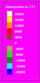На первом этапе (0–0,01 с) был произведён предварительный гидродинамический расчёт, в котором была получена дорожка Кармана, представленная на рис. 3 в виде слоя Z-компоненты переменной «Завихренность». В области адаптации, которая обозначена прямоугольником, видно чередование вихрей, соответствующих положительным и отрицательным значениям компоненты завихренности.