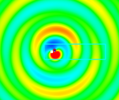Рис. 9. Акустическое давление при совместном расчёте акустики и гидродинамики.