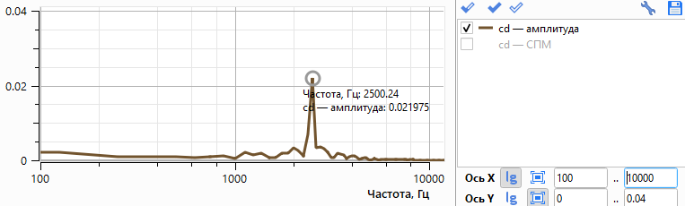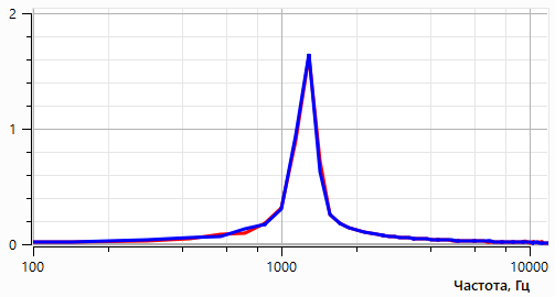 из которой получаем предварительную оценку частоты схода вихрей 1280 Гц.